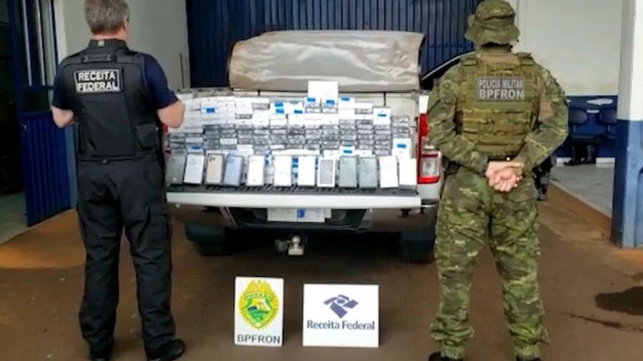 O condutor, veículo e aparelhos foram encaminhados para a delegacia da Receita Federal e Polícia Federal em Cascavel.