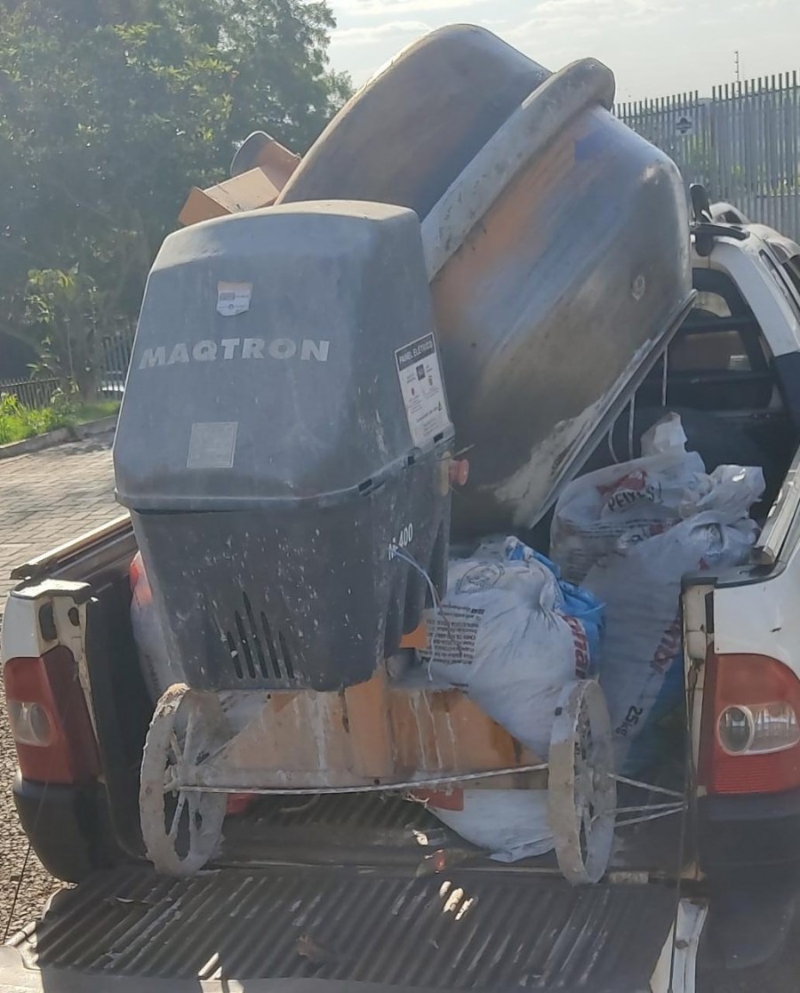 Retornando até a obra onde haviam carregado a betoneira, a equipe policial então encaminhou os dois indivíduos para o destacamento por receptação. Foi realizado a confecção do Boletim e entrega do flagrante delito na Delegacia da Polícia Civil para os demais procedimentos cabíveis.