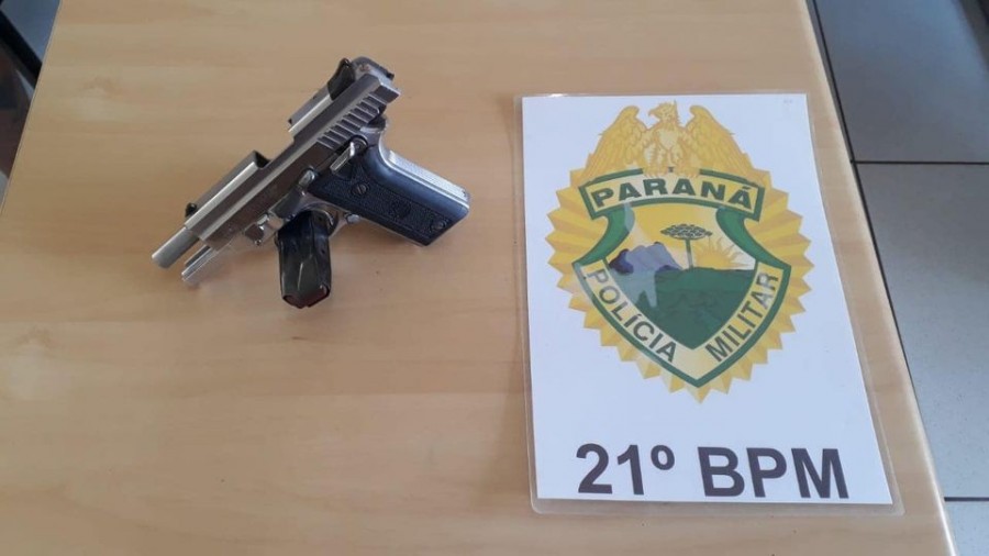 Diante disso a Polícia Militar deslocou—se ao local mencionado, efetuou a abordagem na propriedade, sendo encontrado uma pistola marca Taurus, calibre .380 modelo 938 a qual estava com a numeração suprimida.
