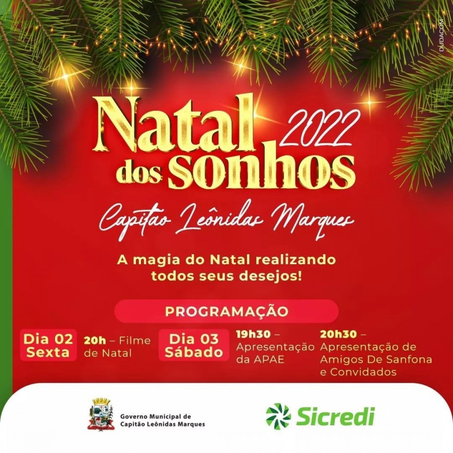 No sábado acontecerá mais uma vez a Feira Natalina a partir das 18h30min. Após as 19h30min o Papai Noel estará atendendo as crianças e famílias para tirar fotos e também haverá apresentações culturais da APAE e Amigos da Sanfona no palco da praça.