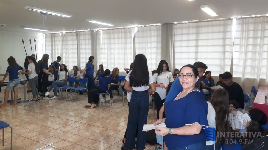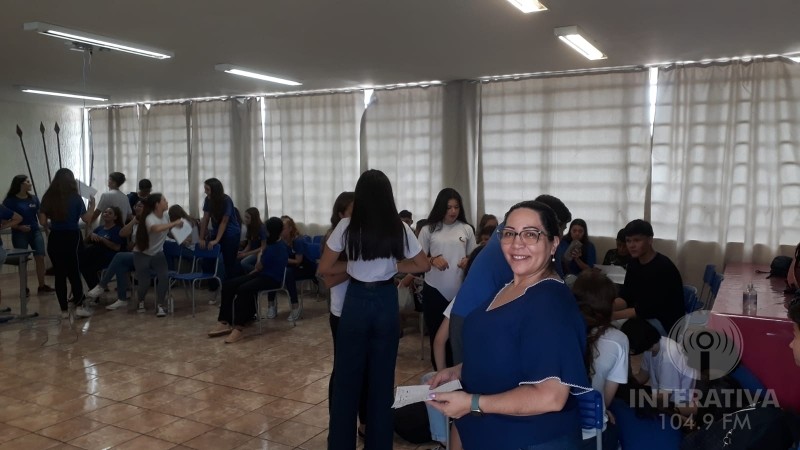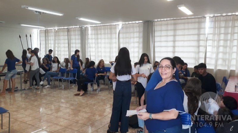 João Vitor que faz parte do grupo Pensadores de Atenas, falou sobre a palestra que os alunos tiveram com a Professora Ana Queiroz e explicou sobre o projeto que seu grupo elaborou.