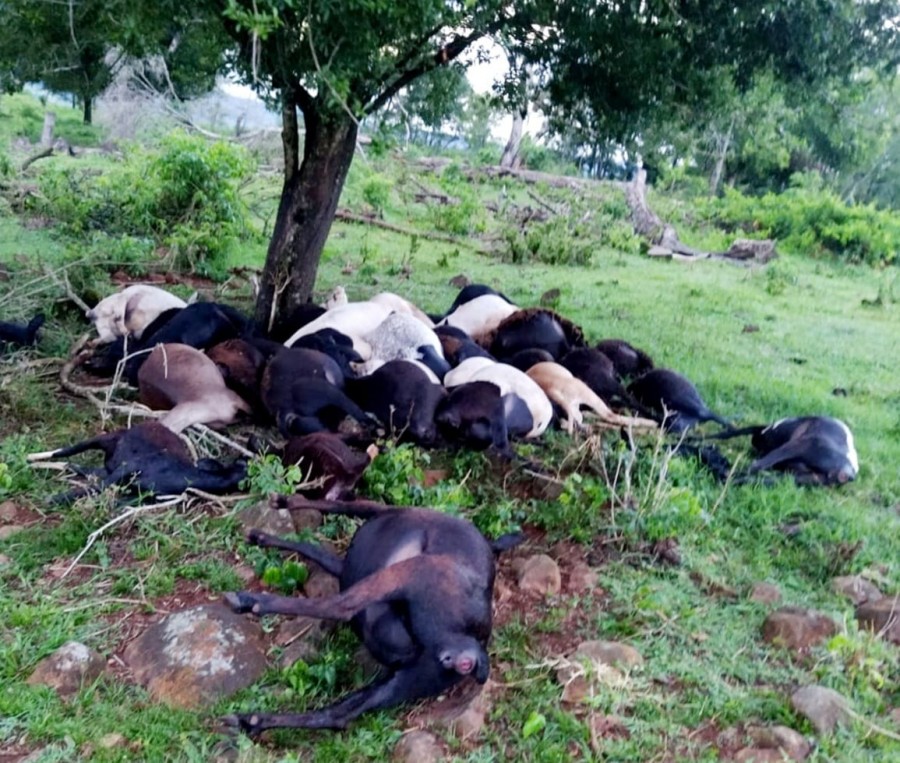 Segundo informações o Raio caiu próximo a uma árvore em que os animais estavam próximos por volta das 17h20 dessa segunda-feira (12).