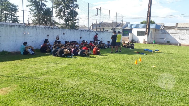 Nesta sexta-feira (16) está sendo realizado uma Clínica de Treinamentos, onde os atletas e os professores de futebol da Secretaria de Esportes estão conhecendo algumas rotinas de treinos específicos.