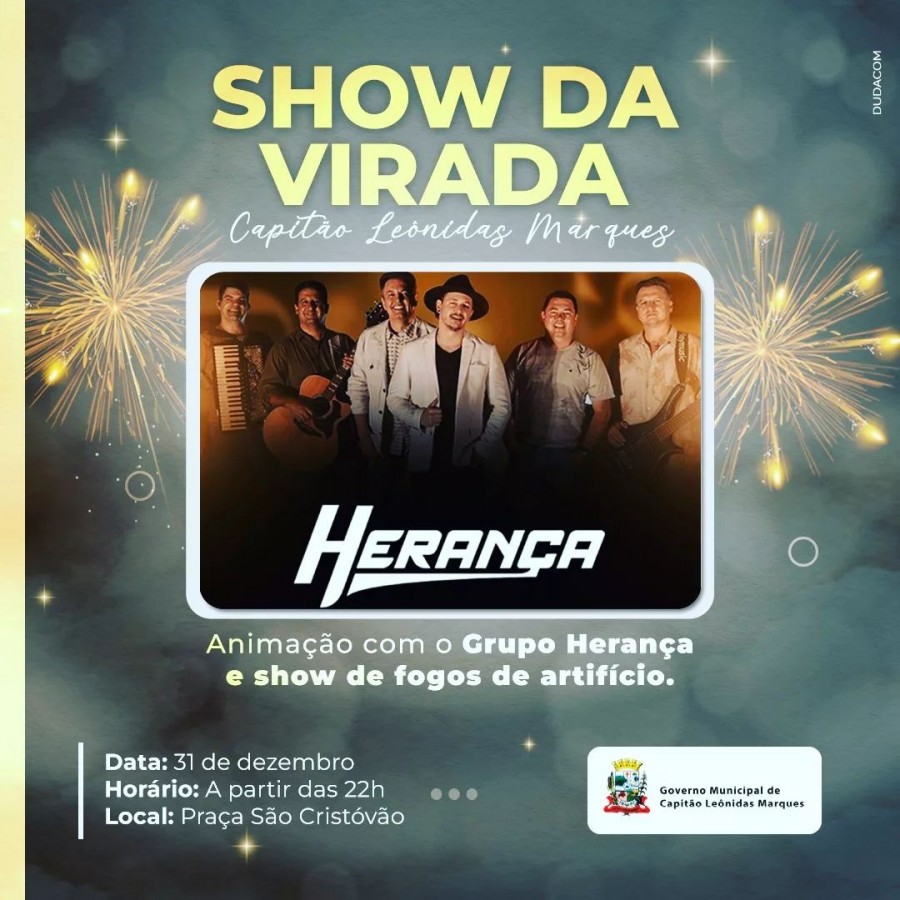 Durante o show que será animado pelo Grupo Herança, também haverá show com fogos de artifício.