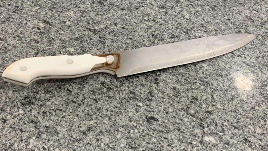 Ele teria agredido a mulher e depois ela deu uma facada na mão do homem.
