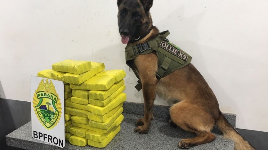 Foram apreendidos 23 quilos de maconha. A localização da droga nas bagagens teve o auxílio do cachorro Ollie da Polícia Militar.
