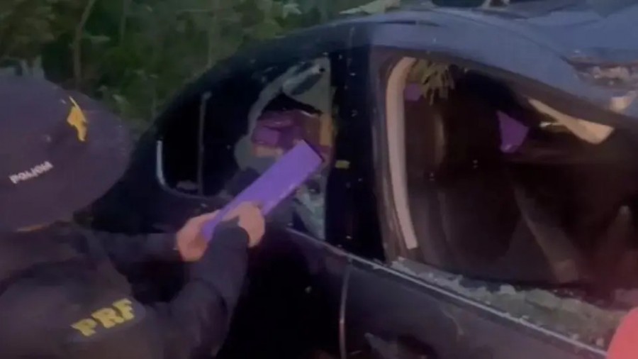 O veículo foi localizado pouco depois, acidentado em uma ribanceira, nos fundos de um posto de combustíveis. Os ocupantes não foram localizados.