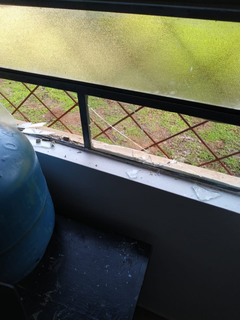 Conforme informações, pelo menos 15 vidros das janelas do local foram quebrados entre sábado e domingo.
