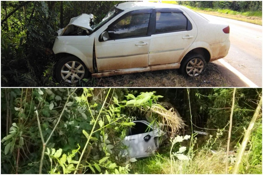 Com a violência do impacto, o motor do carro se desprendeu e foi parar no meio de um matagal na margem da rodovia. A camionete saiu da pista e caiu numa ribanceira, atingindo algumas árvores.