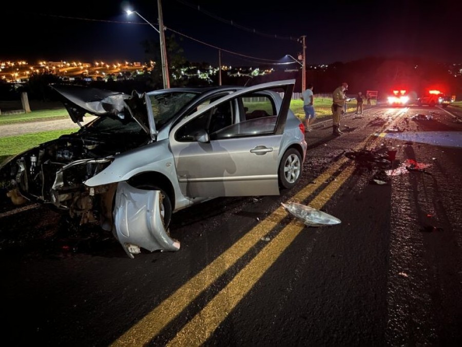 O Jornalismo Ampére AM/Interativa FM apurou que o veículo seguia sentido a PR-182. A moto transitava na pista contrária. A motocicleta ficou completamente destruída. O carro teve danos de grande monta.