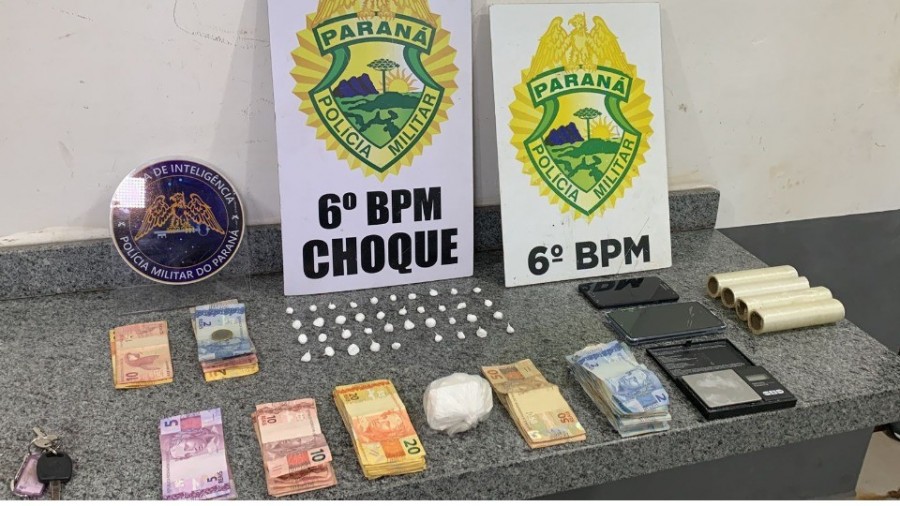 Foram apreendias 179 gramas de cocaína, duas balanças de precisão e R$ 2.233 em dinheiro.