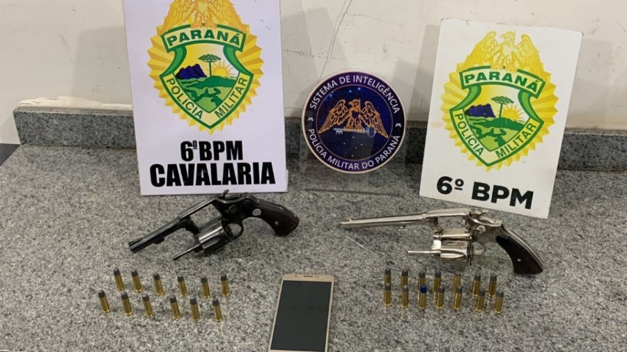 Houve a abordagem na Rua Monte Castelo e foram encontrados dois revólveres calibre 38 com munições intactas.