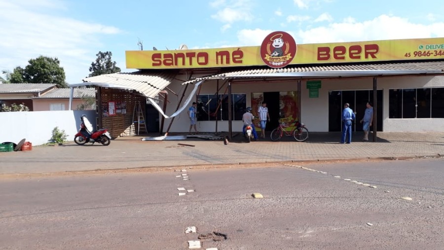 A carreta acertou as vigas da cobertura, que vieram abaixo. Um carro que passava na rua também quase foi atingido.