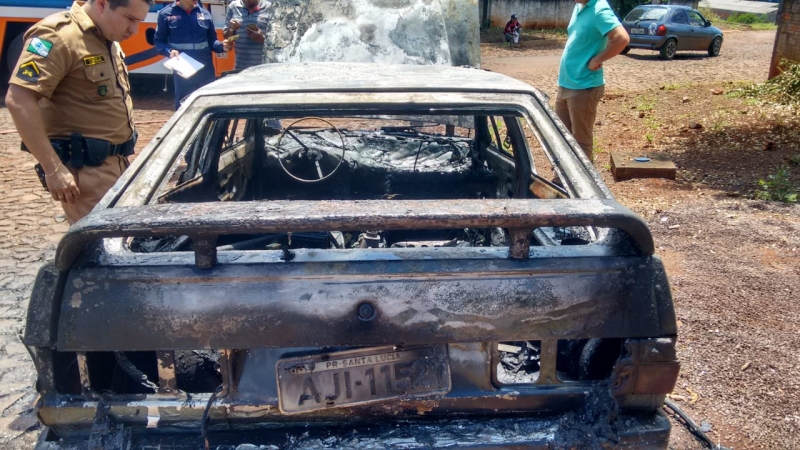 O Corpo de Bombeiros de Capitão Leônidas Marques, foi acionado mas quando chegaram ao local o veiculo já havia sido destruído pelo fogo.