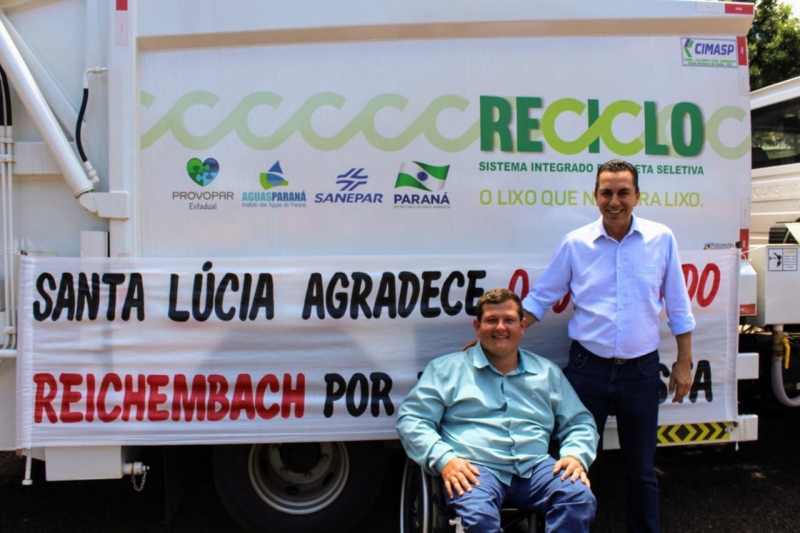 O município de Santa Lúcia recebeu na sexta-feira (09), um novo caminhão basculante que será utilizado na coleta de lixo na cidade. O caminhão foi destinado através do Programa Reciclo do Governo do Estado. Até então em Santa Lúcia o caminhão usado não era adequado para o serviço de lixo orgânico. Agora é importante que a população faça a separação do lixo.