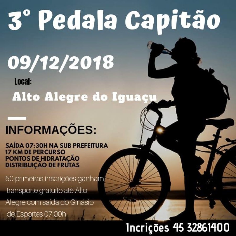 O passeio ciclístico vai acontecer no domingo dia 09 de dezembro no distrito de Alto Alegre do Iguaçu.
