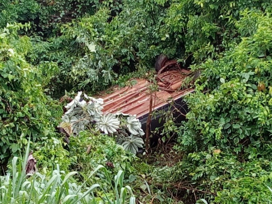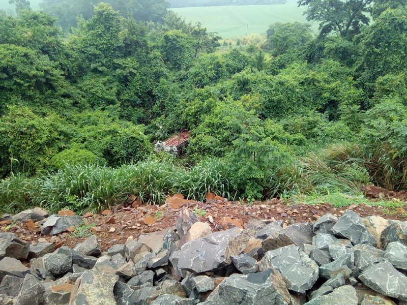 O veiculo, um Honda Civic de cor Prata, seguia sentido a Realeza, quando saiu da pista e capotou e caiu em um barranco de aproximadamente 25 metros.