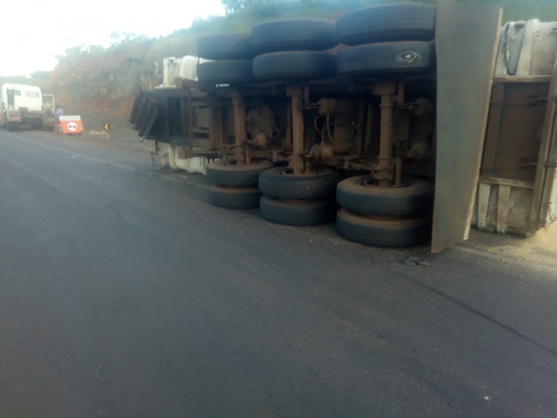 O motorista de 34 anos, que não ficou ferido, realizava uma conversão para acessar o trevo de Boa Vista da Aparecida, quando a carga pendeu e a carreta tombou.