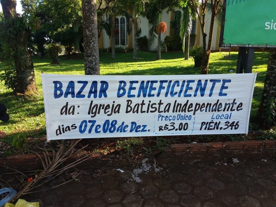Neste sábado, dia 07 de dezembro, a Igreja Batista Independente promove um bazar beneficente, que será realizado na própria sede da igreja na rua Piêm, n°346, em Capitão Leônidas Marques.