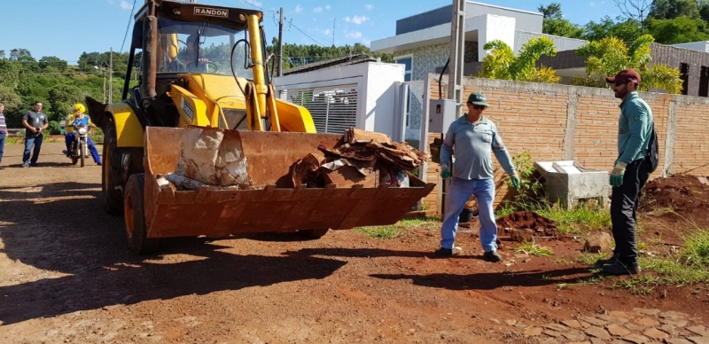 As equipes estão realizando o recolhimento de entulhos e possíveis objetos que possam ser criadouros do mosquito na cidade.